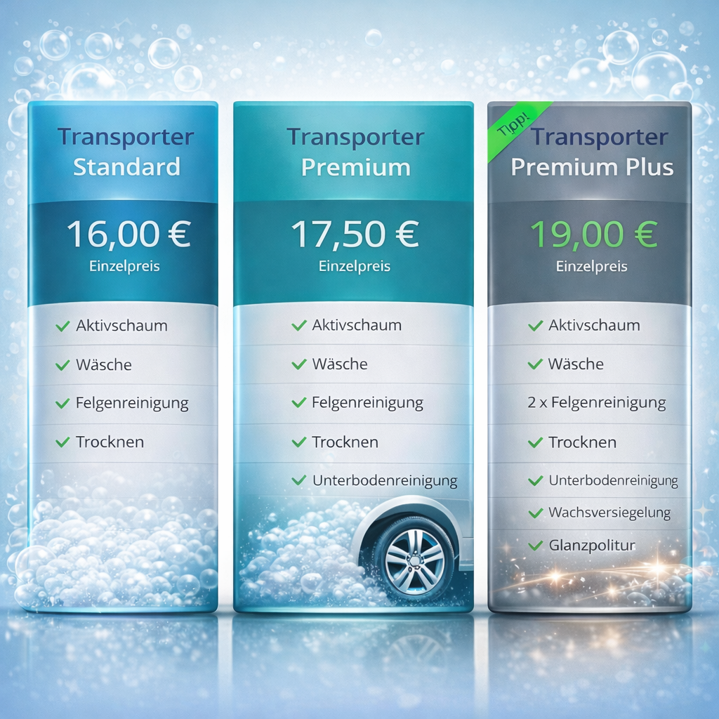 Du hast außerdem die Freiheit zu wählen, wie du die Waschanlage nutzen möchtest. Du kannst während der Wäsche bequem in deinem Auto sitzen bleiben oder, je nach Verfügbarkeit vor Ort, das Auto verlassen und draußen auf die Wäsche warten – ganz nach deinem persönlichen Komfort und Vorlieben.